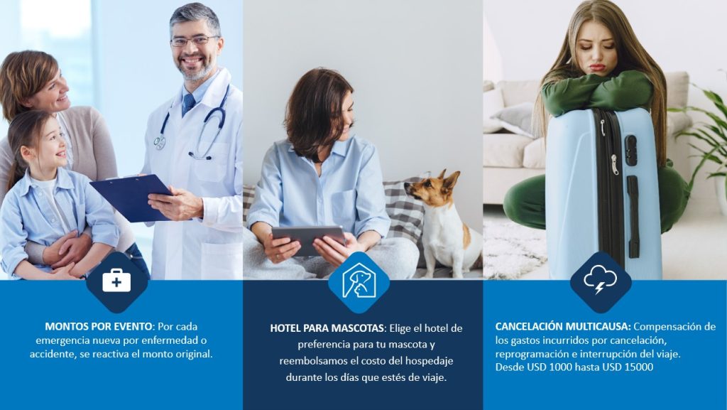 Contamos con planes que garantizan a nuestros clientes su tranquilidad ante eventuales problemas de salud o cualquier imprevisto que se presente en el desarrollo de un viaje internacional.